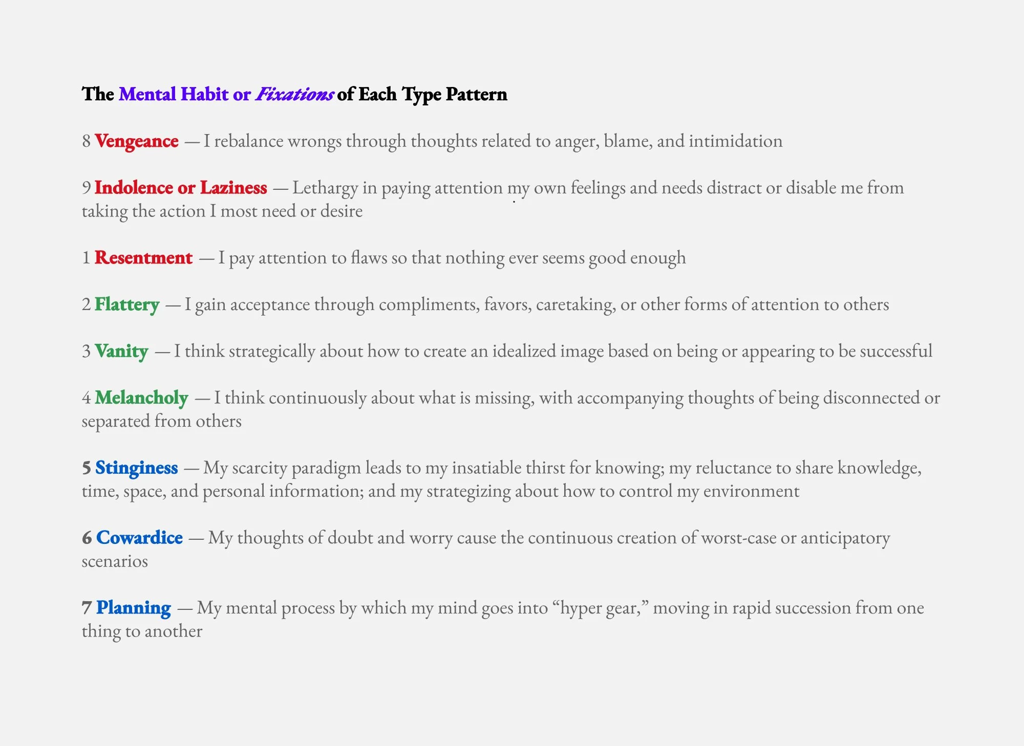 Fixations Defined ← Back to Enneagram Resources Types, Week 2, VisualsOlya MilovskaAugust 25, 2025 Facebook0 Twitter 0 Likes
